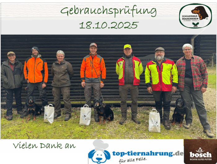 Ein besonderer Dank gilt Michael Thalheimer für die Bereitstellung des Reviers bei Dettingen am Albuch sowie der Sauteichhütte. Weiter auch ein großes Dankeschön an die Mitrichterinnen, welche sogar eine Drückjagdeinladung ablehnten und weite Anfahrt aus dem Raum Gießen in Kauf nahmen, um bei dieser Prüfung zu richten – dieses Engagement ist nicht selbstverständlich!