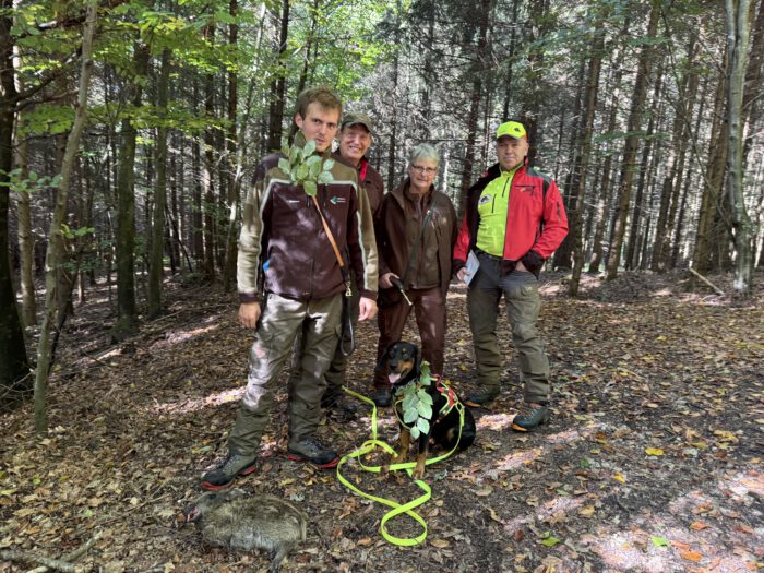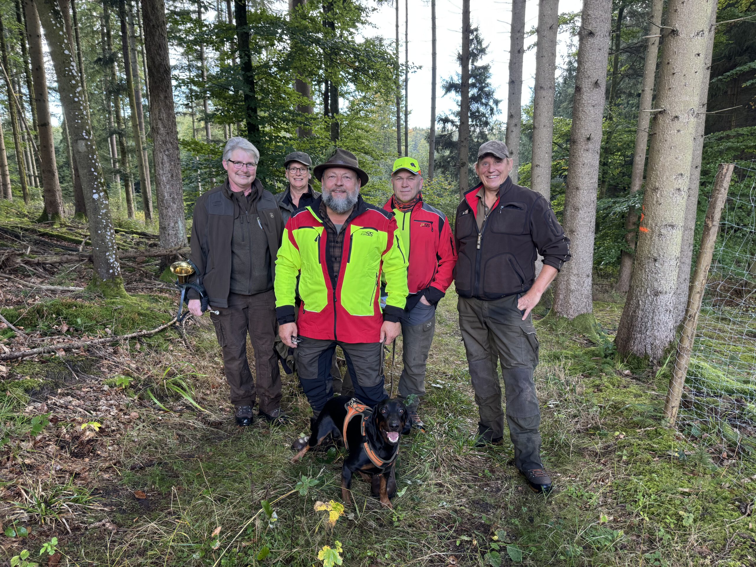 Am 04. Oktober 2025 trafen sich um 8:00 Uhr vier Gespanne mit den Richtern an der Jagdhütte von Rainer Ilg. Nach der Begrüßung und Erläuterung des Tagesablaufs wurden die Ahnentafeln der Hunde eingesammelt, die Chipnummern kontrolliert, so wie die Startreihenfolge für die Fährten ausgelost.